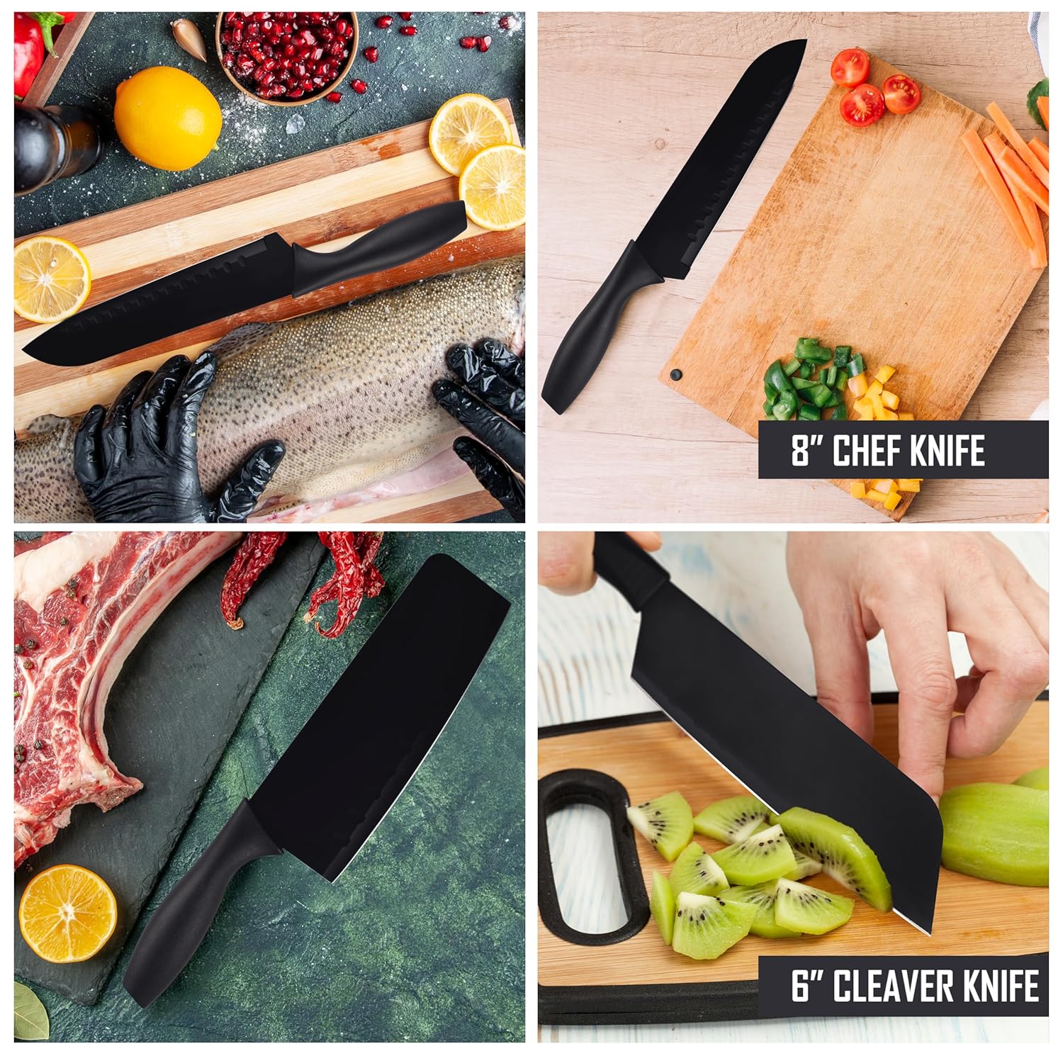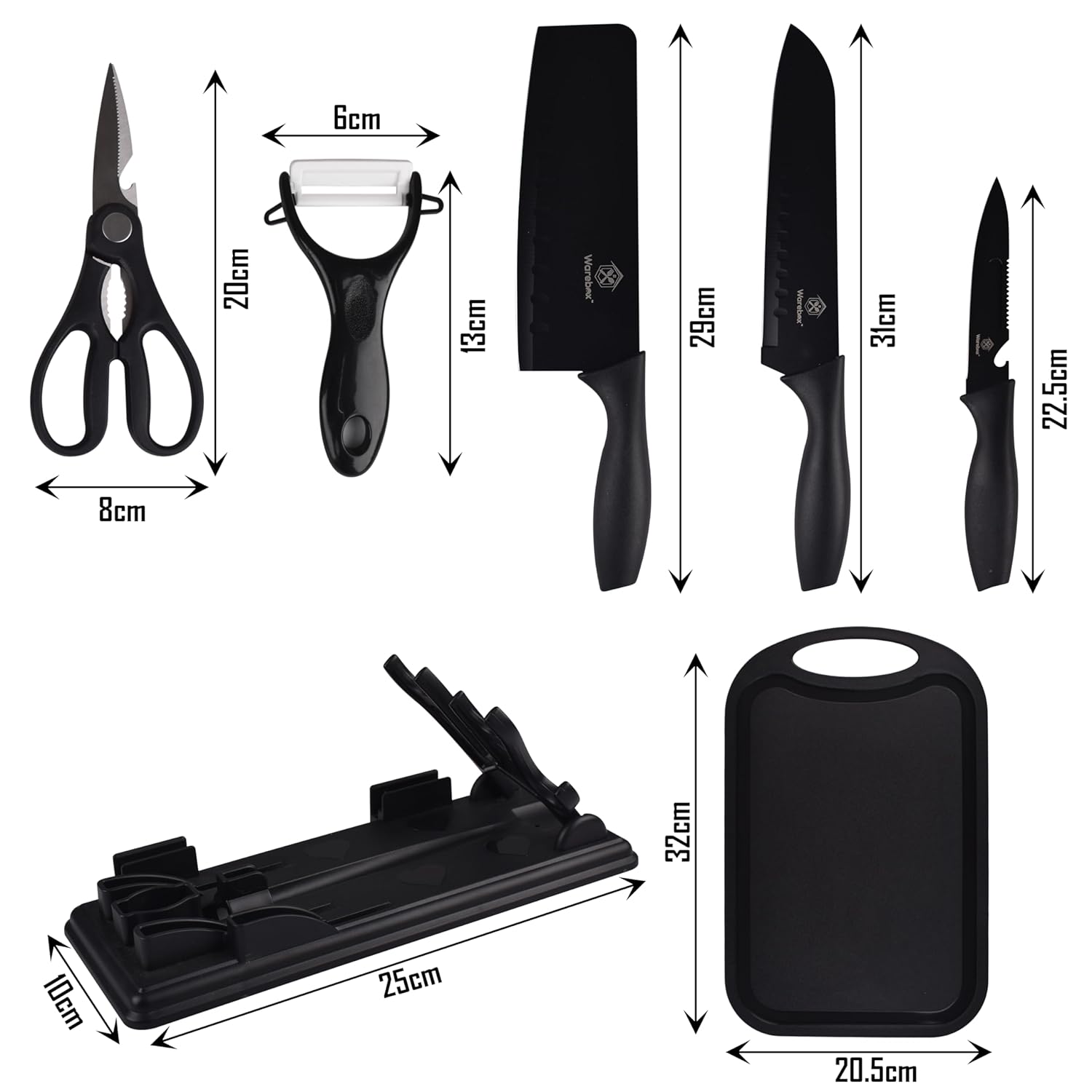 Complete kitchen mandatory set: This premium kitchen knife set includes a chef knife, clever knife, multipurpose utility knife with a fish scale remover, vegetable cutting board, peeler, multicribute kitchen scissors, and a PP stand, creating a comprehensive kitchen gadget collection for all your crici needs.