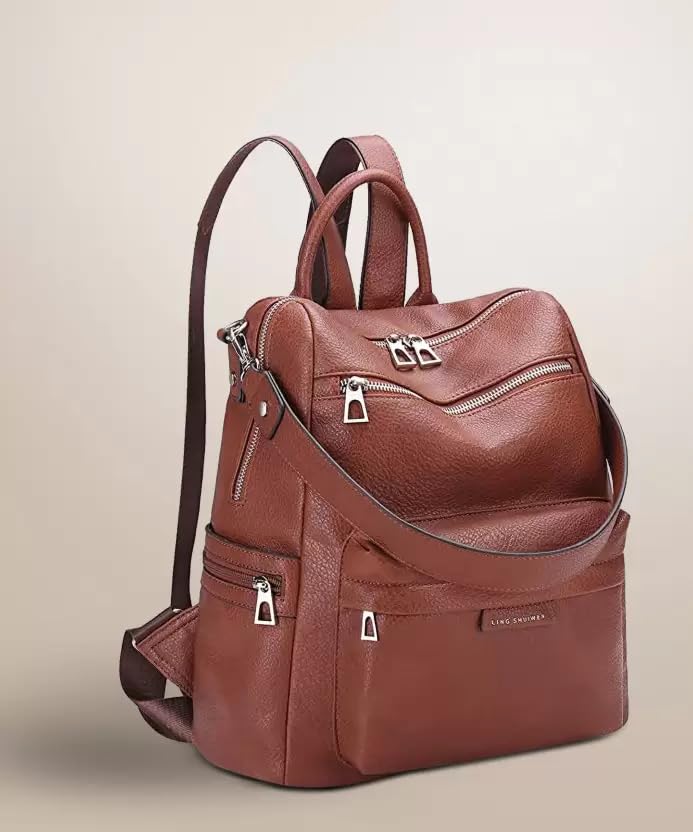 High Quality – Soft PU leather backpack, with brushed silver hardware. 1 top handle, 1 detachable shoulder strap and 2 adjustable back straps