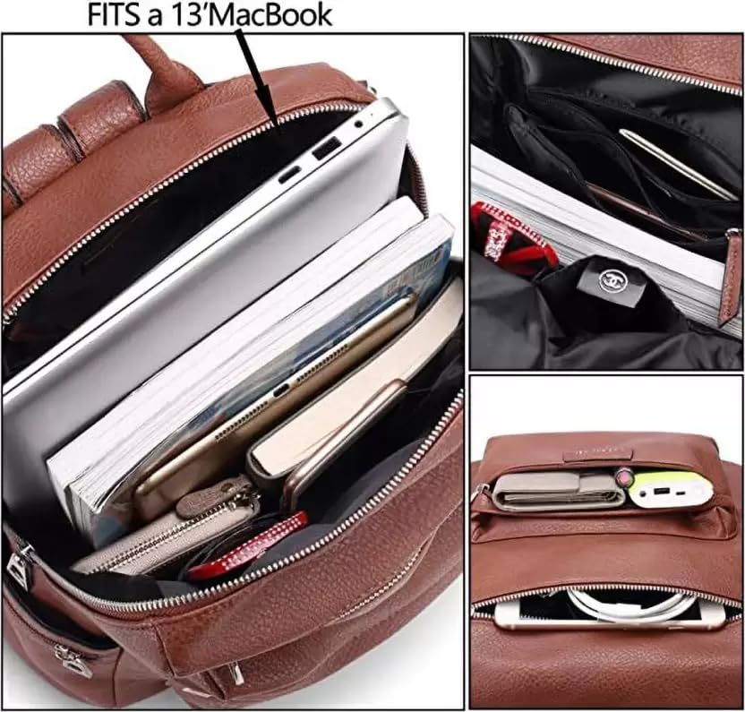 High Quality – Soft PU leather backpack, with brushed silver hardware. 1 top handle, 1 detachable shoulder strap and 2 adjustable back straps