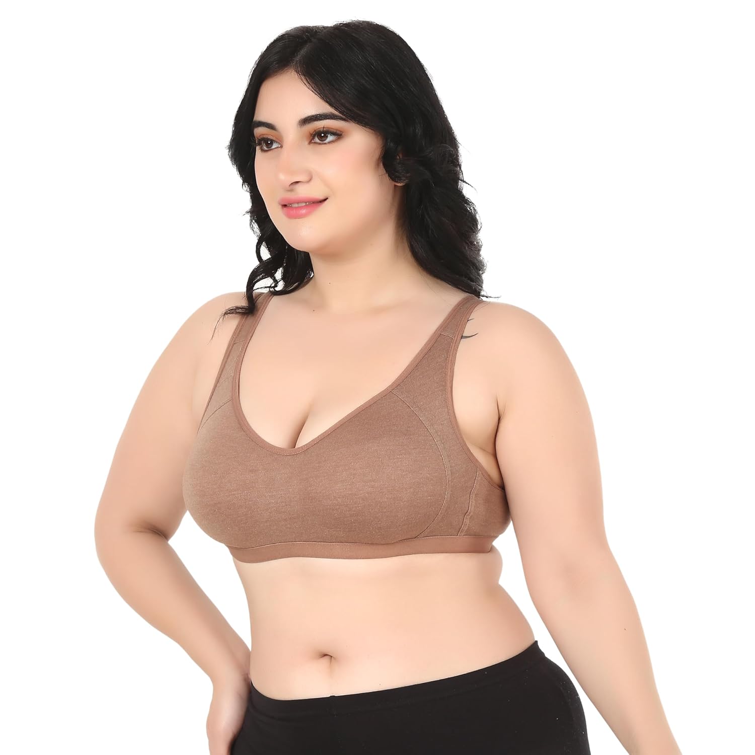 The shirred front helps shape and the 2-ply construction comfortably hugs the natural contours while providing softness and support without padding. The everyday t-shirt bra with no underwire has an adjustable back closure for a custom fit and is easy to wear. Perfect for styling with deep V dresses. Ideal for many occasions like daily wear, lounge, dating, work, party or yoga.
