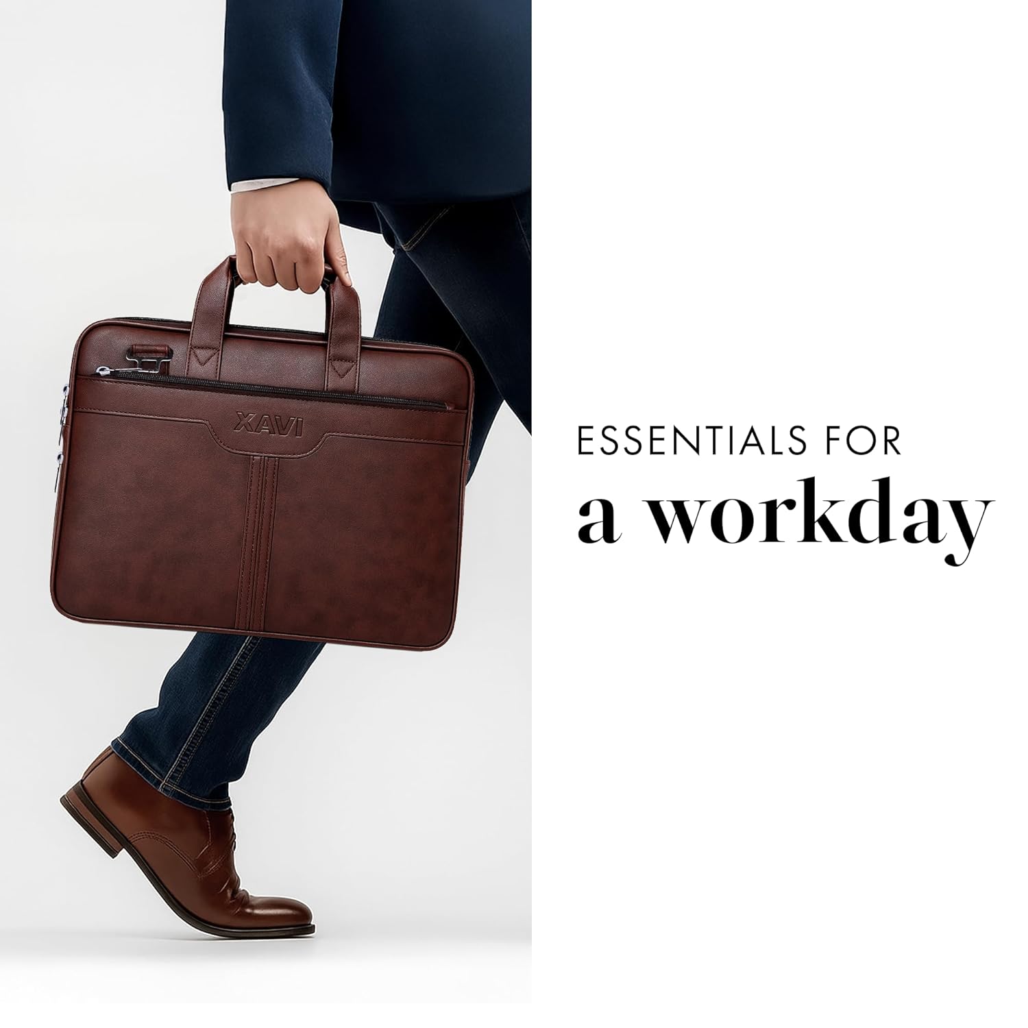 XAVI Messenger Bag – Laptop Bag for Men | Men’s PU Leather Expandable Office Bag | Shoulder Bag for Laptop or Tablet | Smooth, durable | Supports laptops up to 15.6 inches (tan)