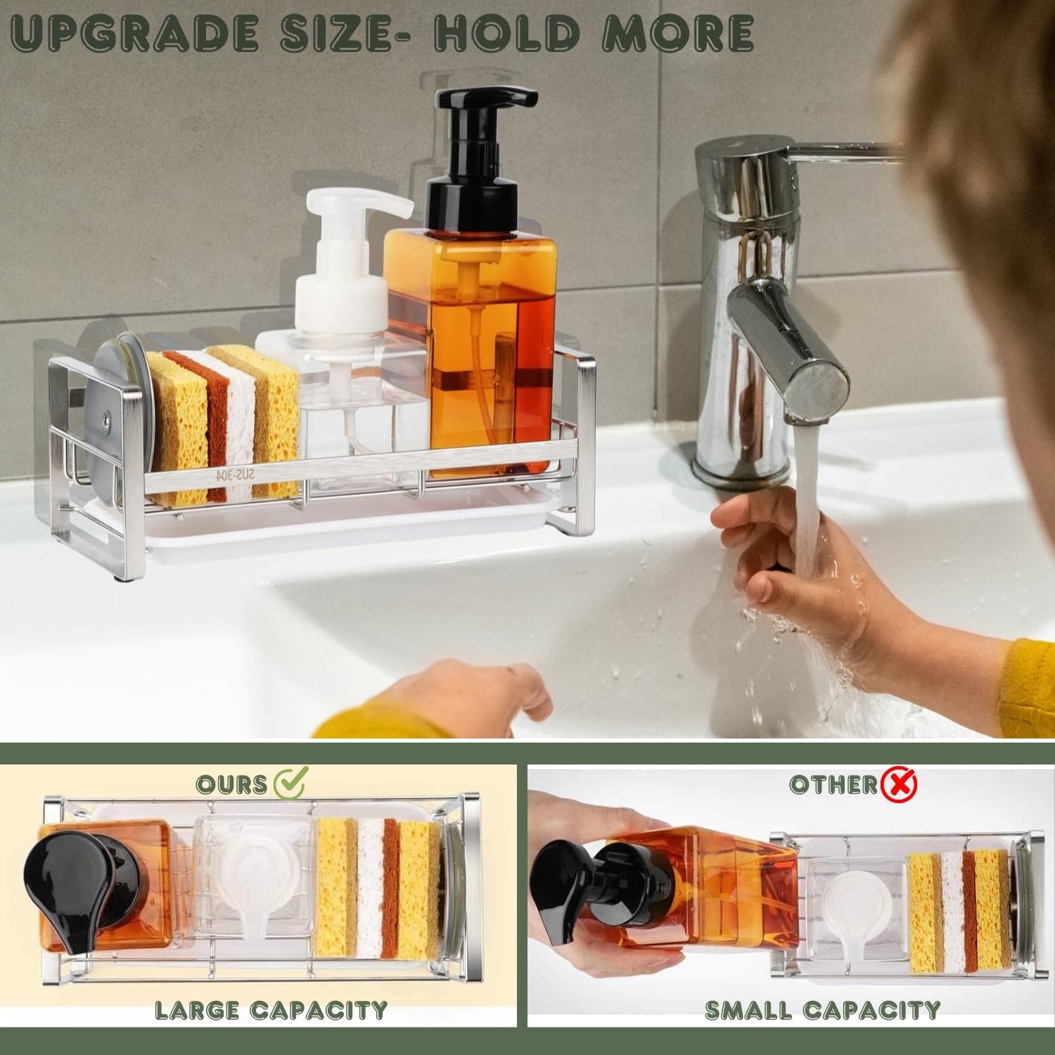 Multi-functional and convenient: Whether you need a sync organizer or wall-mounted caddy for your kitchen basin, the Eumun kitchen sink organizer keeps your kitchen disorganization with dedicated places dedicated to the dish soap and sponge racks.