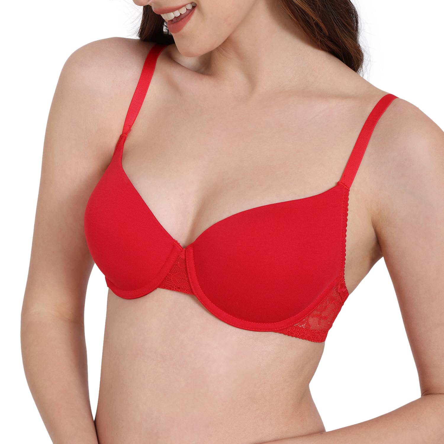Zivame Lightly Padded Underwired Bra Bright red, padded wired bra 95% cotton, 5% spandex Hand wash.