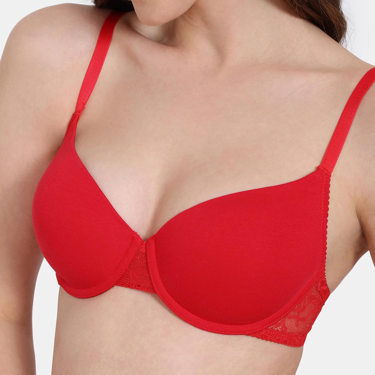 Zivame Lightly Padded Underwired Bra Bright red, padded wired bra 95% cotton, 5% spandex Hand wash.