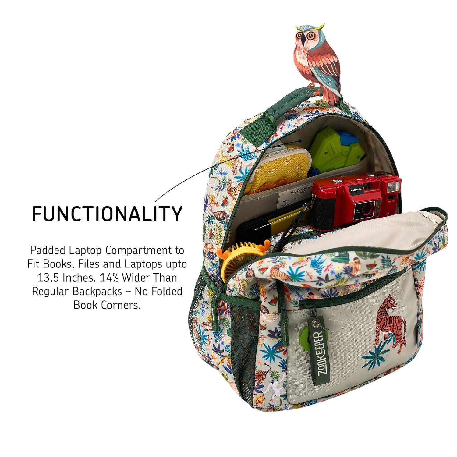 Make every school day magical with the Zookeeper Medium School Bag for Kids, the perfect blend of comfort, style and practicality. Specially designed as a school bag for 5-7 year old girls, this backpack bag is spacious, durable and incredibly lightweight. Whether you are looking for school bags for boys or school bags for girls, Zookeeper ensures that every child carries their world with comfort and style. This kids school bag has 3 spacious compartments, internal organizer and side pockets for bottles that provide perfect space for books, lunch box and stationery. The Backpacker Bag for Boys and Backpacker Bag for Girls is made from 600D recycled polyester, making it water-resistant, eco-friendly, and long-lasting. Every bag for kids is designed with padded straps and a breathable back panel for all-day comfort, even during heavy school days or outdoor fun. If you are looking for a school bag for kids that is a blend of functionality and fun, your search ends here. The Zookeeper Back Pack keeps everything organized, no folded books, no messy corners! It is 14% wider than regular school bags for boys and school bags for girls, ensuring ample space for every essential. From its sturdy back bag construction to the soft padded support, it is designed to make school runs comfortable and stylish. The adorable fairy design makes it the ideal school bag and kids bag for girls who love a little sparkle. The vibrant color and signature silicone charm turns it into one of the latest stylish bags in the collection for girls. Whether you’re choosing a small backpack for weekend outings or a school bag for 5-7 year olds, this is the perfect choice for every little explorer. Versatile enough to be both a backpack for boys and a backpack for baby girls, the Zookeeper Medium Backpack Bag doubles as a travel companion, preschool bag to school, or everyday bag for boys. Thoughtfully designed, it’s also perfect for parents looking for a durable little bag for girls that will last through every adventure. Choose Zookeeper where every kids bag for boys, every bag for girls and every school bag for kids is crafted with love, sustainability and kid-friendly designs. Let your child go out with confidence with a school bag for 5-7 year old boys that is as strong, bright and courageous as they are.